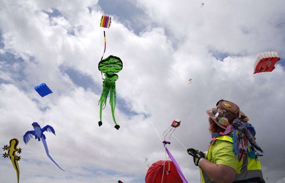 Kite designs included "Finding Nemo"-inspired fish, blue dragons, yellow lizards and a wiggly green jellyfish. One inventive entrant was a kite in the shape of a skydiver. Another was a giant hand that flew above spectators, waving in the wind.