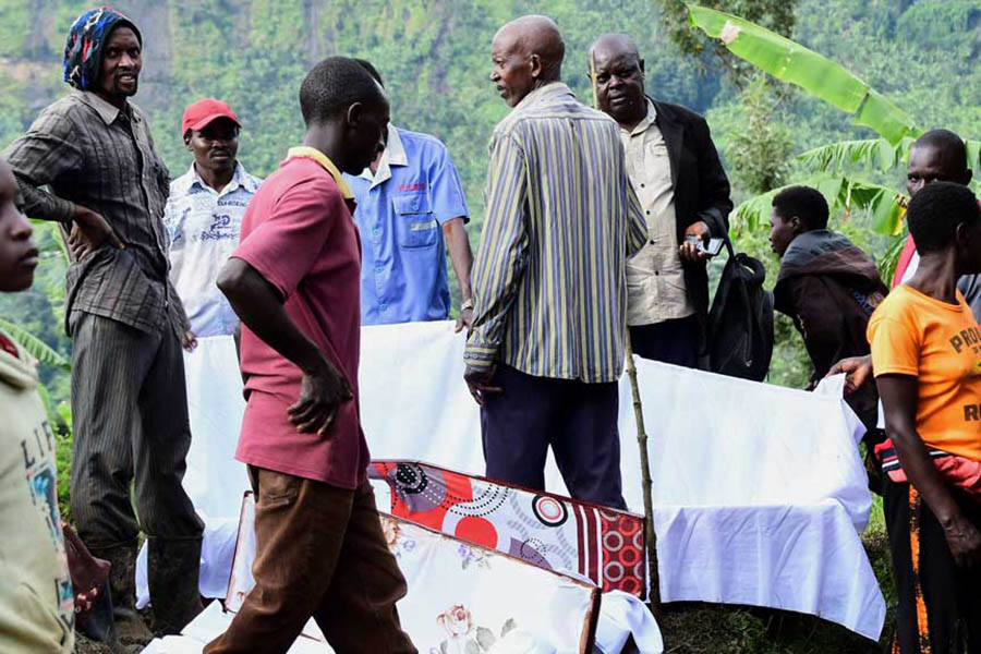 The bodies of two three-year-old boys were among those pulled from mud in eastern Uganda, swelling to 28 the death toll from a landslide last week that buried several villages, police said, with dozens still unaccounted for.