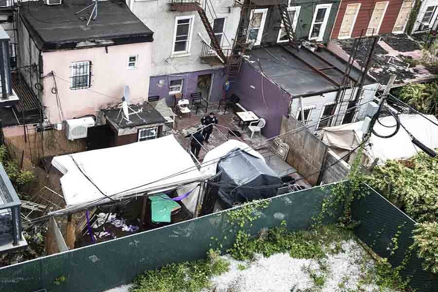 The block where the shots rang out has empty storefronts and boarded-up buildings as well as renovated townhouses.