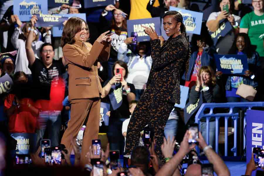 Republican Donald Trump appealed to Muslim voters in Michigan on Saturday as Michelle Obama made an impassioned plea on behalf of Kamala Harris at the Democrat's own rally in the battleground state.