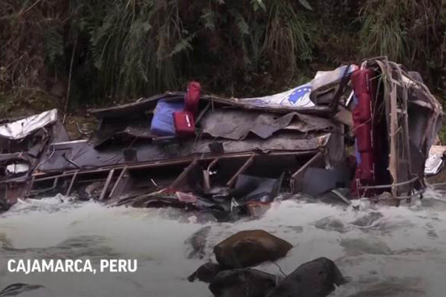 The bus was heading to the town of Sorochuco on Sunday evening when it overturned and crashed down a slope into a river, Olga Bobadilla, provincial prosecutor for the Cajamarca region, told local radio station RPP.