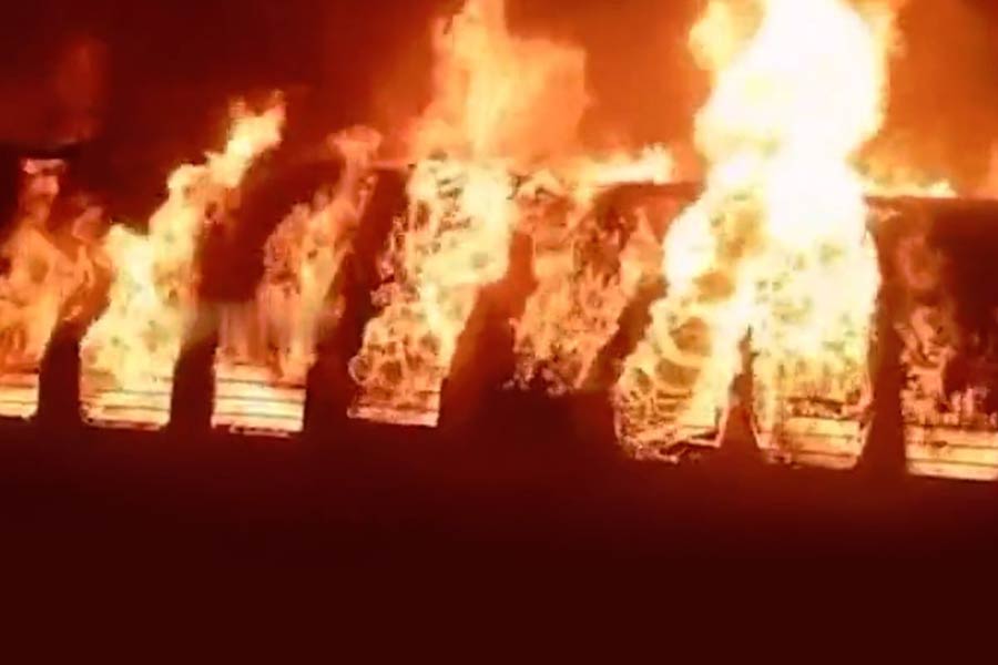 Police, fire and rescue services personnel besides railway staff, involved in dousing the fire, extricated the charred bodies from the compartment.