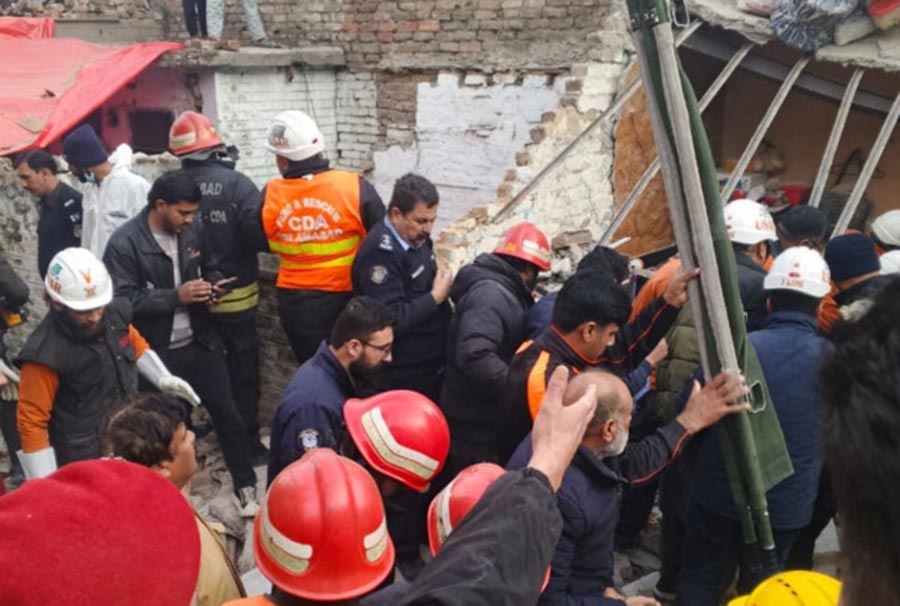 The blast occurred overnight as guests gathered to celebrate the couple, causing part of the house to collapse, according to the Islamabad police. Seven people were injured.