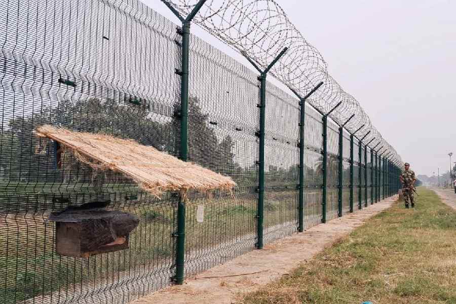 A beehive fitted with the fencing along the India-Bangladesh border near Gede in Nadia district –The Telegraph photo
