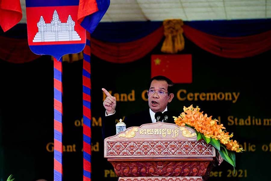 Cambodian Prime Minister Hun Sen speaking during a ceremony at the Morodok Techo National Stadium in Phnom Penh of Cambodia on September 12 in 2021 –Reuters file photo
