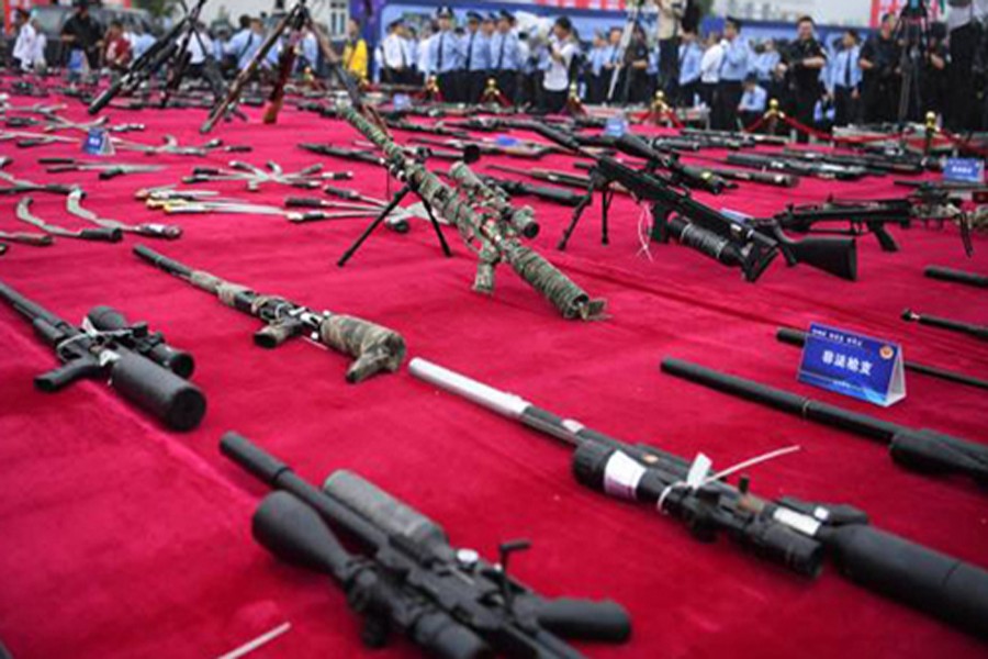 Over 140,000 illegal guns and a large number of explosives confiscated or turned over to the police were destroyed on Thursday in 146 cities, including Chongqing, Qiqihar, Nanjing, Wuhan, Guangzhou and Kunming.
