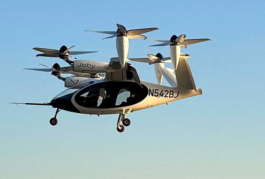 The Joby Aerial Taxi, the flagship electric vertical take-off and landing aircraft developed by the California-based company, can fly distances of up to 160 km at speeds reaching 320km/hr.