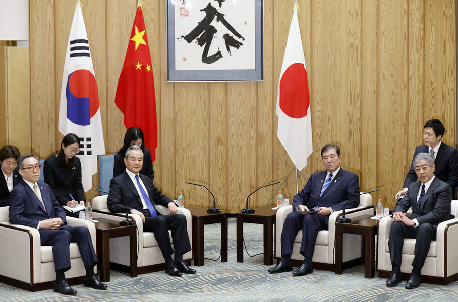 Ishiba said Friday that cooperation among the three countries will serve their national interest and regional and global peace. The talks come amid growing political and economic uncertainty at home and challenges from U.S. President Donald Trump.