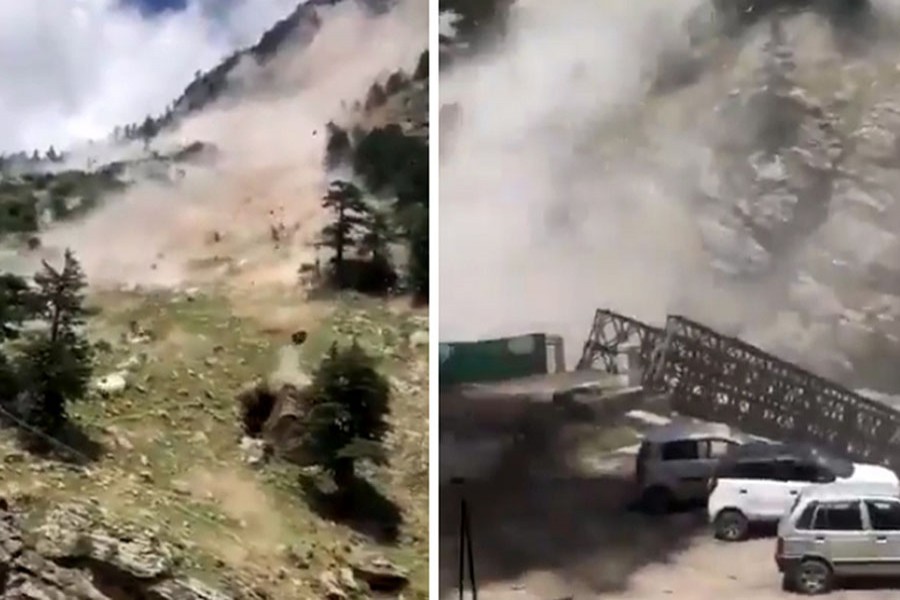 Television footage showed Batseri bridge in the Kinnaur district had collapsed and other vehicles were damaged as boulders rolled downhill due to landslides.