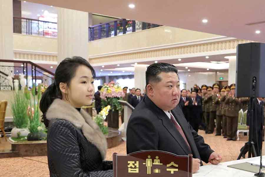 Ju Ae, who is believed to be in her early teens, has been increasingly prominently featured in North Korea's state media accompanying her father on field guidance including inspections of weapons projects amid speculation by analysts that she is being groomed as the country's fourth-generation leader.