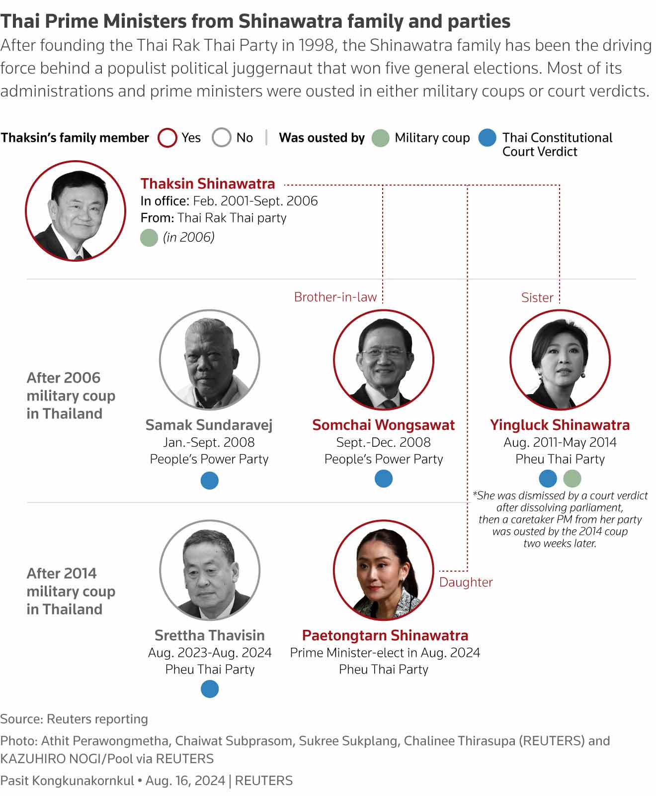 Thai Prime Ministers from Shinawatra family and parties