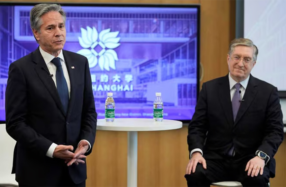 While in Shanghai, Blinken also spoke with American and Chinese students at New York University's local campus, where he said intercultural interactions were "the best way to make sure that we start by hopefully understanding one another".