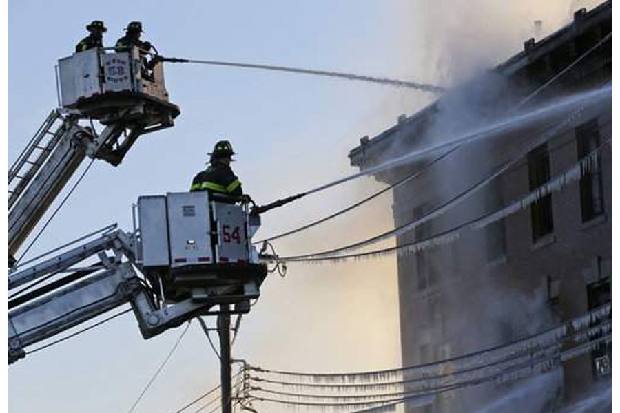 Officials say over 200 firefighters have responded to the blaze at a four-story building near the Bronx Zoo in Van Nest. It was reported about 5:30 a.m. Tuesday.