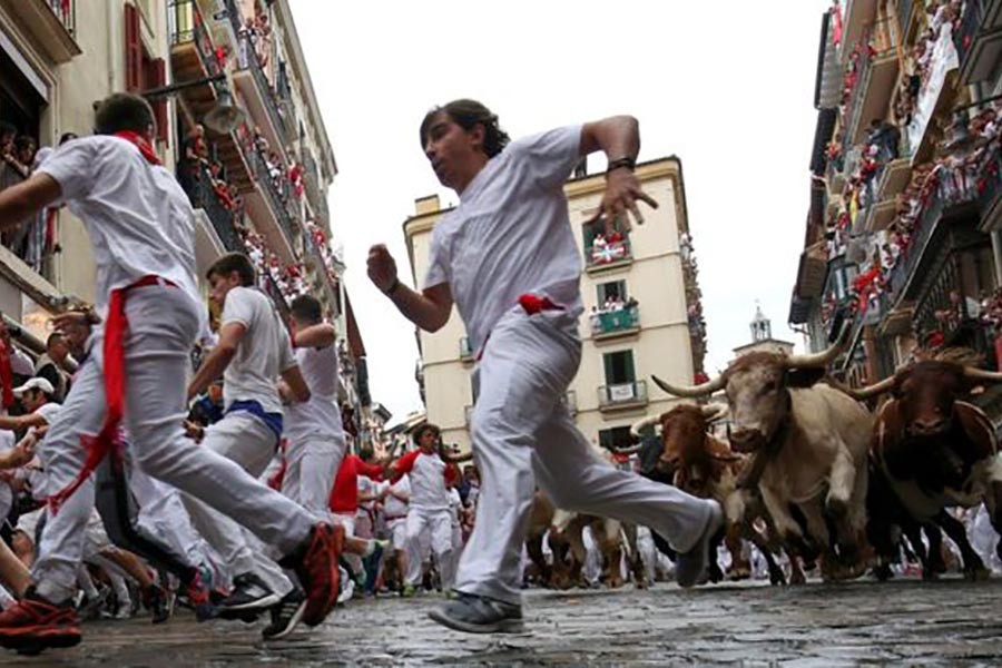 According to the Pamplona government, on average hundreds of people are injured every year during the festival, although few require medical treatment - falling and grazes are far more common than injuries caused by bulls or pile ups in the crowd.