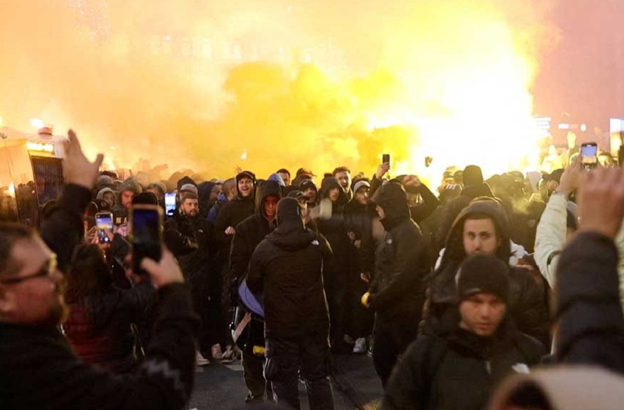 The city's police department has said Maccabi fans were chased and beaten by gangs on scooters. Police also said the Israeli fans attacked a taxi and burned a Palestinian flag.