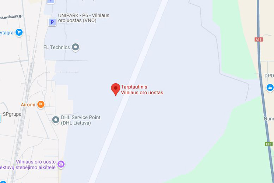 Firefighters were seen at 0530GMT pouring water onto smoke from a building some 1.3 km (0.8 mile) north of the airport runway in the Lithuanian capital.