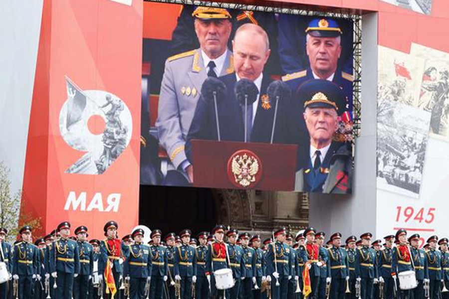State-run news agency Ria Novosti showed footage of a Victory Day march in memory of those who died in the war.