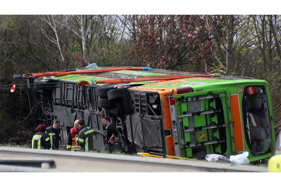Local media reported that five people were dead after a Flixbus veered to the right of the busy A9 motorway, which connects Berlin to Munich, before ending up on its side.
