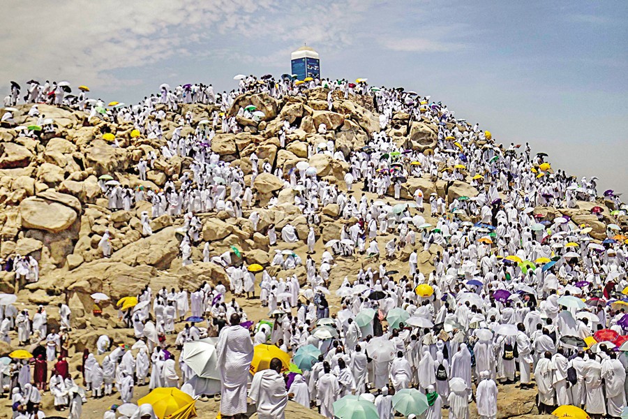 Clad in white, worshippers began arriving at dawn for the most gruelling day of the annual rites, ascending the rocky, 70-metre (230-foot) hill where the Prophet Mohammed is believed to have given his last sermon.