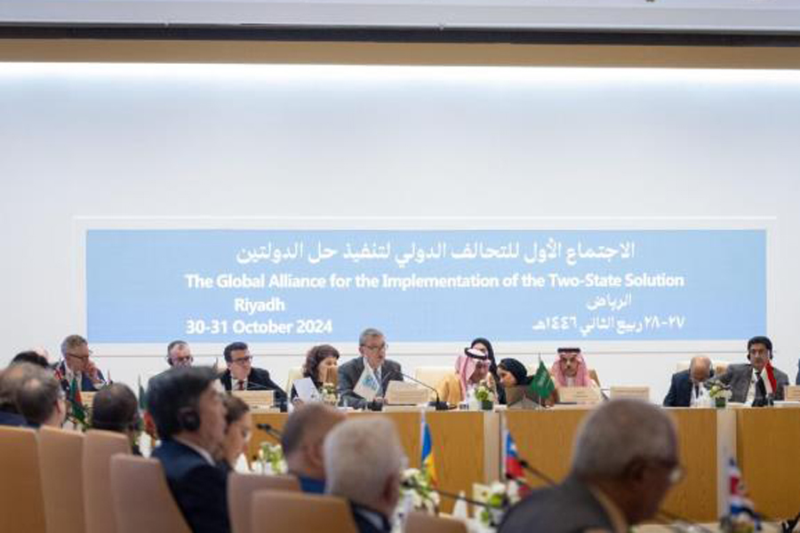 Saudi Arabia has hosted the first meeting of the global alliance in Riyadh, aiming to push for the establishment of a Palestinian state.