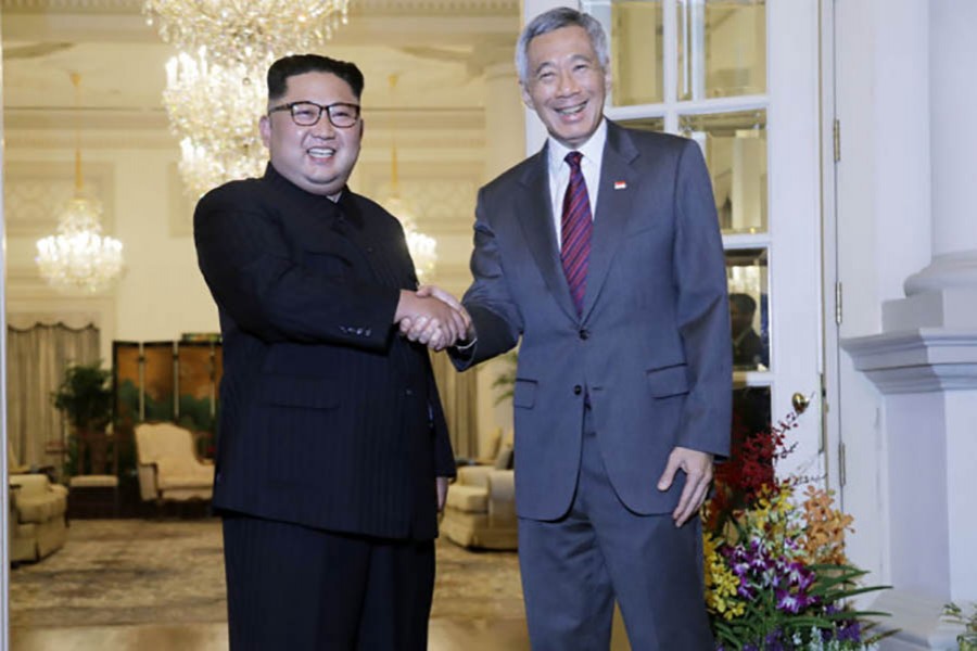 Singapore Prime Minister Lee Hsien Loong met with Kim Jong Un, chairman of the Workers' Party of Korea (WPK) and chairman of the State Affairs Commission of the Democratic People's Republic of Korea (DPRK), in Singapore on Sunday.