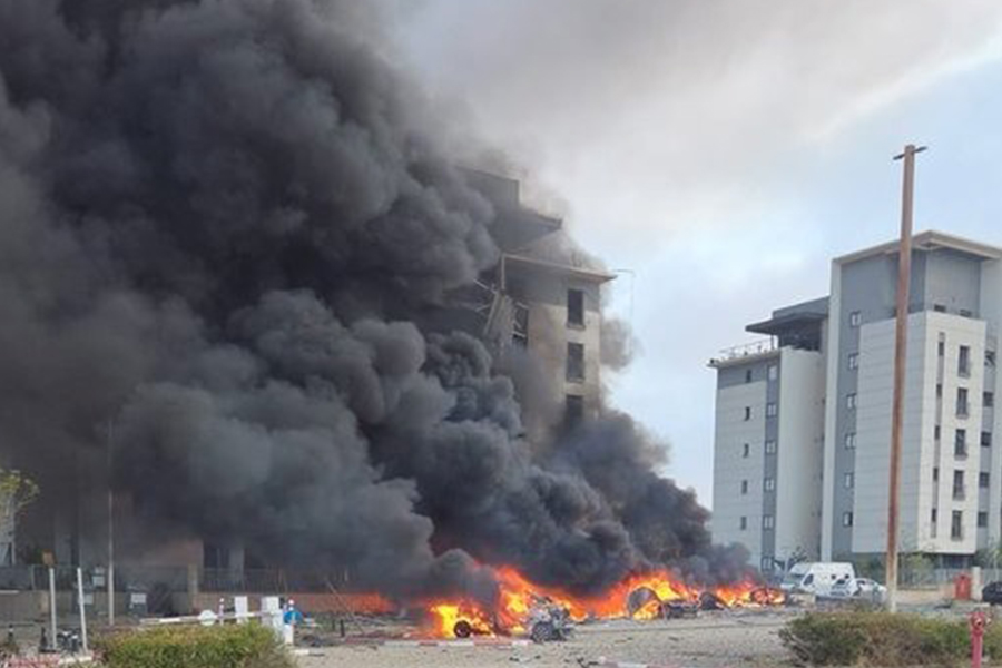 Fires and large plumes of black smoke erupted at the site of an Iranian missile strike in southern Israel. Israeli rescue service Magen David Adom shared a photo of the aftermath and reported no casualties so far, with teams being sent to the area.