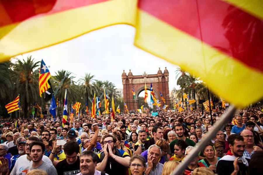 A large demonstration by supporters of independence has been called in Barcelona in the afternoon to protest the remanding in custody of two Catalan activists accused of sedition.