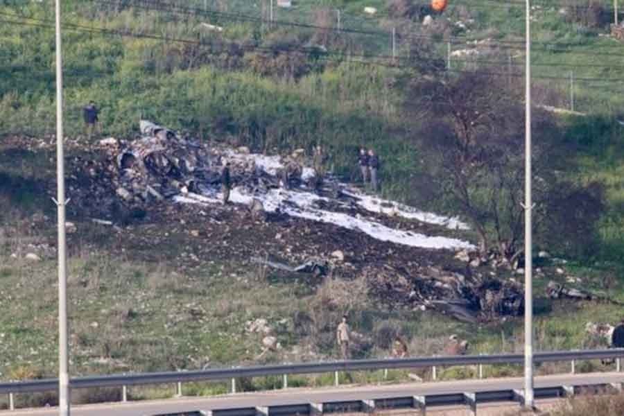 The two pilots parachuted to safety before the crash in northern Israel. It is believed to be the first time Israel has lost a jet in the Syrian conflict.