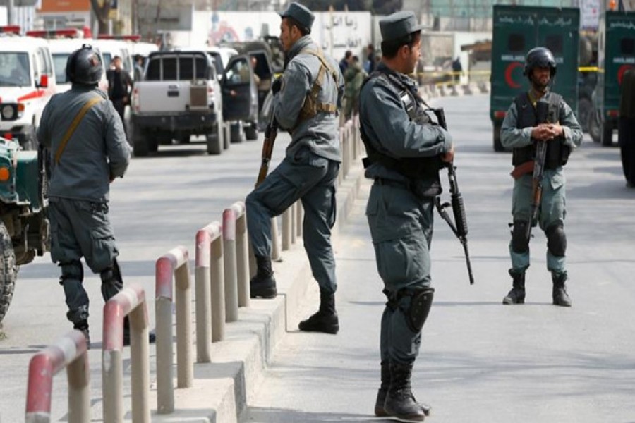 Two Afghan policemen were killed and seven civilians injured in an attack by Taliban at a security outpost in eastern Laghman province of Afghanistan, officials said.