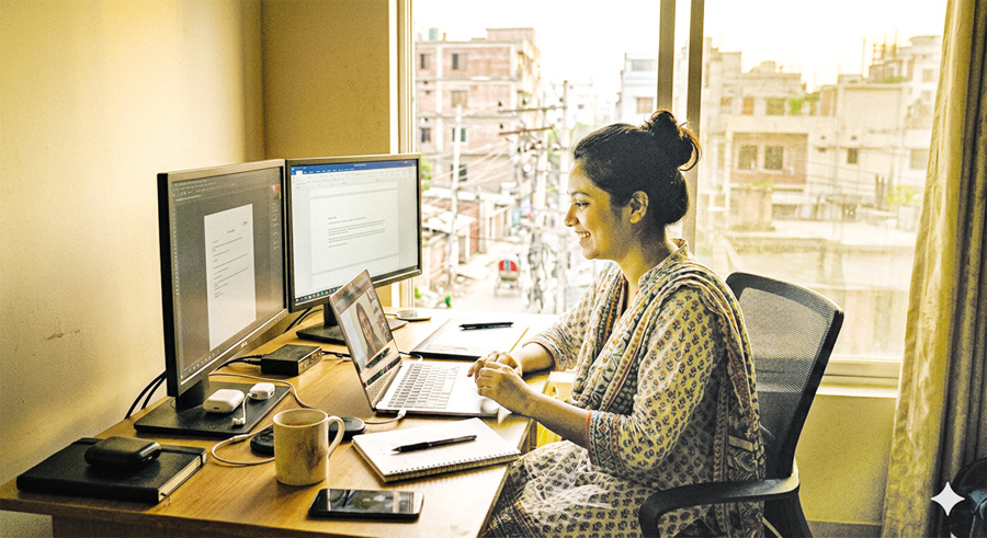The government is aggressively attempting to mainstream gig labour as a remedy for unemployment after realising its potential. A large-scale training programme for freelancers is presently being carried out in 48 districts by the Ministry of Youth and Sports.These activities have quantifiable outcomes. According to ministry data, as many as 10,800 young people had finished training under this initiative as of December 2025. Remarkably, 6,732 trainees, or more than 62 per cent of those trained, have successfully begun making money in both local and foreign markets, bringing in close to US$ 1.14 million thus far. Dr Asif Nazrul called for the programme to go from teaching 18,000 young people to eventually reaching 1.8 million, emphasising that it is only getting started. The gig economy has structural issues despite its success, especially with relation to gender participation. Due to social safety concerns and what experts refer to as the "Maternal Wall," women barely make up 9.0 per cent to 10 per cent of the freelance sector. But the e-commerce industry is undergoing a revolutionary change. According to a 2022 Meta study, 70 per cent of Facebook-based companies founded since the epidemic are owned by women, and groups like the "Women and e-Commerce Forum" have more than a million members.
