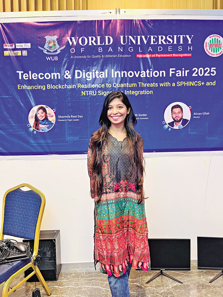 Shormila Rani Das and her team from the World University of Bangladesh, under the guidance of Assistant Professor Ahsan Ullah, have developed an innovative framework to strengthen blockchain systems against emerging quantum computing threats. Their research combines SPHINCS+ and NTRU, two advanced post-quantum cryptography methods, offering enhanced protection for digital transactions.