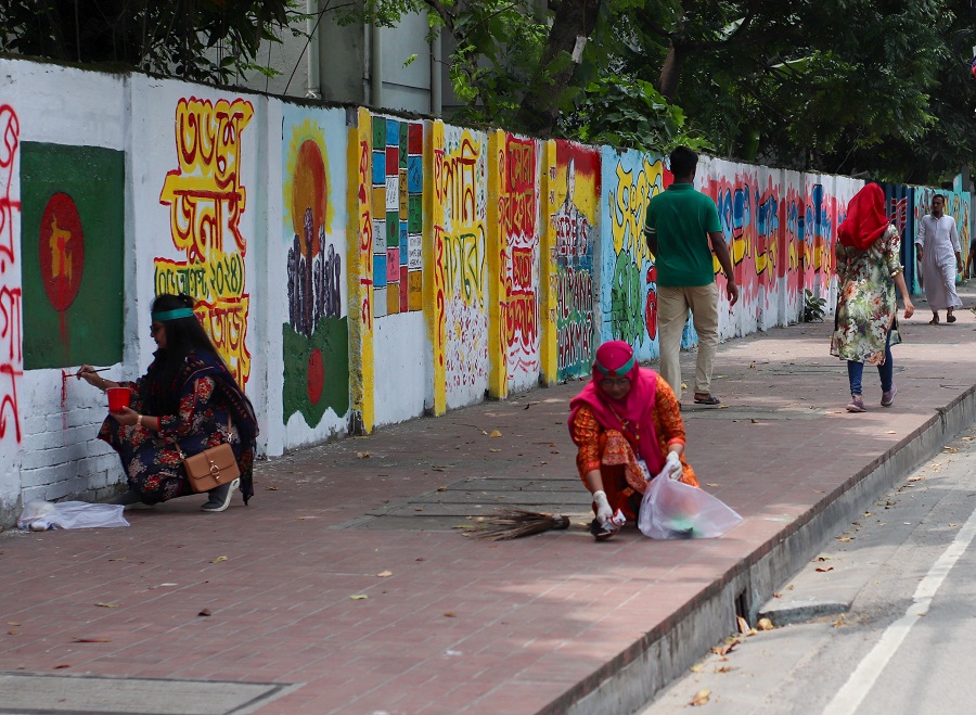 People around that area appreciate these voluntary works and want to assist the volunteers. One such person is Aziza Begum, who lives in Mohammdpur. This movement has also impacted her, and she has offered graffiti artists support and refreshments.