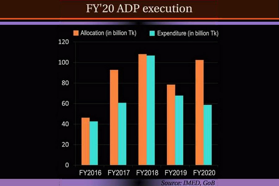 The country's lone railway service provider spent only Tk 58.82 billion, 57 per cent of its total Tk 102.49 billion outlay in FY2020.