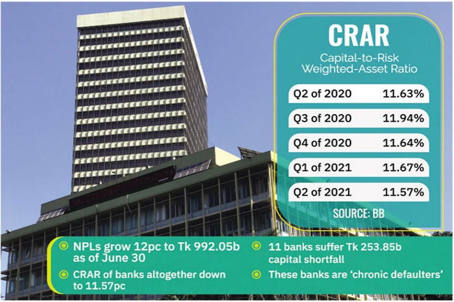 The 11 banks-five state-owned commercial banks (SoCBs), four private commercial banks (PCBs) and two specialised banks (SBs) -were put on the list of capital shortage, according to the BB officials.
