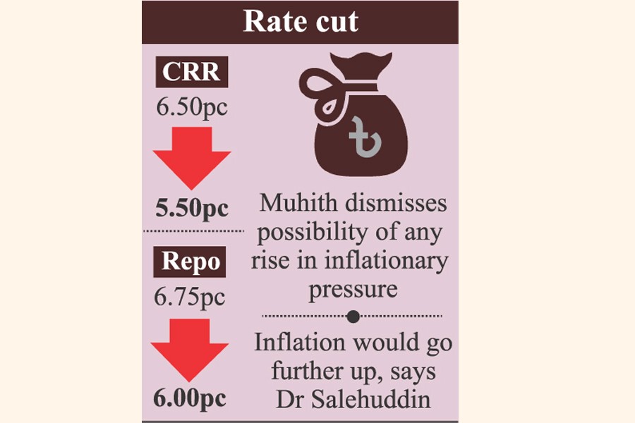 However, former BB governor Salehuddin Ahmed expressed the concern over slashing of the CRR, saying that it would push inflationary pressure further up.