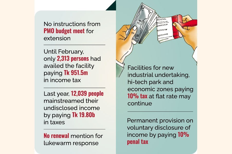On finalizing the budgetary measures for the financial year (FY) 2022-23, the National Board of Revenue (NBR) held a meeting with the Prime Minister Thursday where no instruction for extension of the facility came, the officials said.