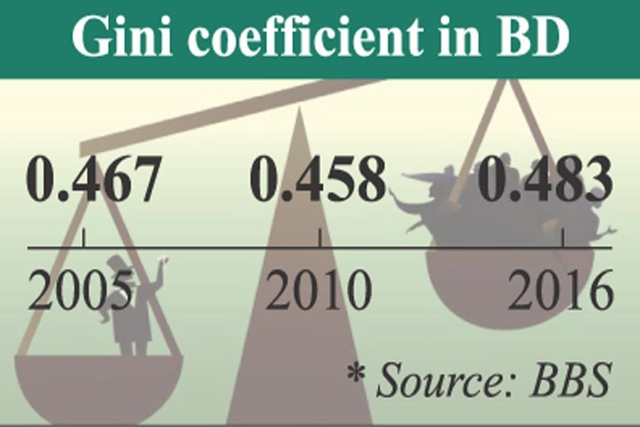 The survey, conducted by the state-run Bangladesh Bureau of Statistics (BBS), showed that the Gini coefficient, which measures income inequality within a country's population, increased to 0.483 from 0.458 in 2010.