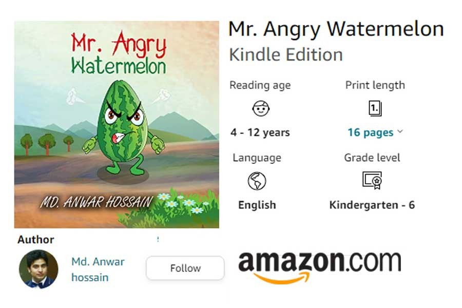 A leading e-commerce platform, Amazon.com, has recently released a new e-book, titled 'Mr Angry Watermelon', written by Bangladeshi writer Md Anwar Hossain for children in English.