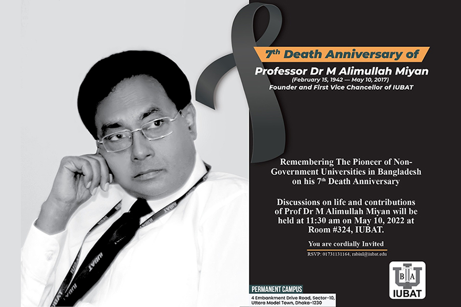 The seventh death anniversary of Professor Dr M Alimullah Miyan, the founding vice-chancellor of International University of Business Agriculture and Technology (IUBAT) is on Friday.