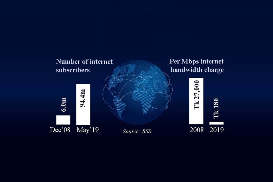 The telecommunications minister said per Mbps internet bandwidth charge was Tk 27,000 in 2008 and it reduced to only Tk 180 now.