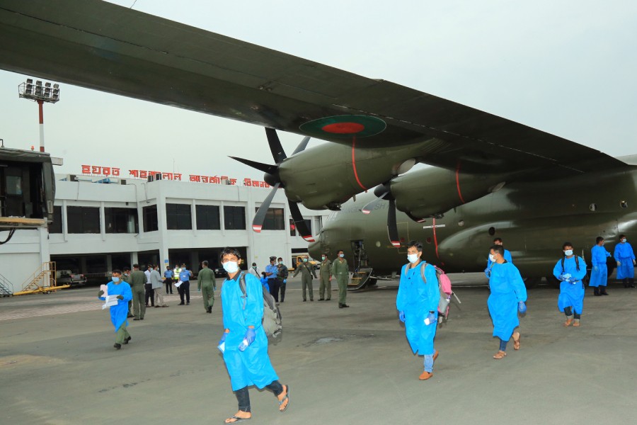 An aircraft of Bangladesh Air Force returned to Bangladesh on Tuesday with 70 Bangladeshi nationals residing in Maldives.