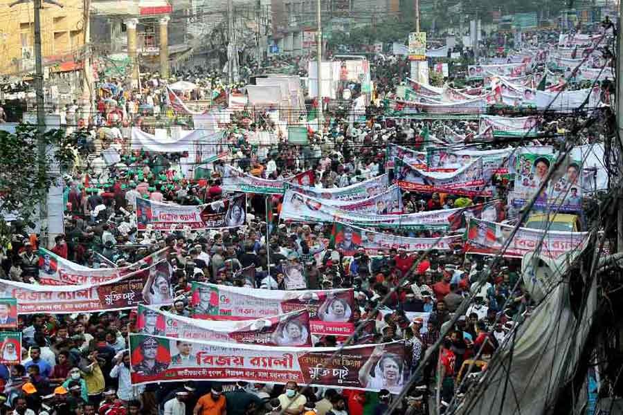The BNP leader said they were taking out the rally with a heavy heart with their party chairperson Khaleda Zia, the “first female freedom fighter” of the 1971 Liberation War, fighting for life at Evercare Hospital in the capital.
