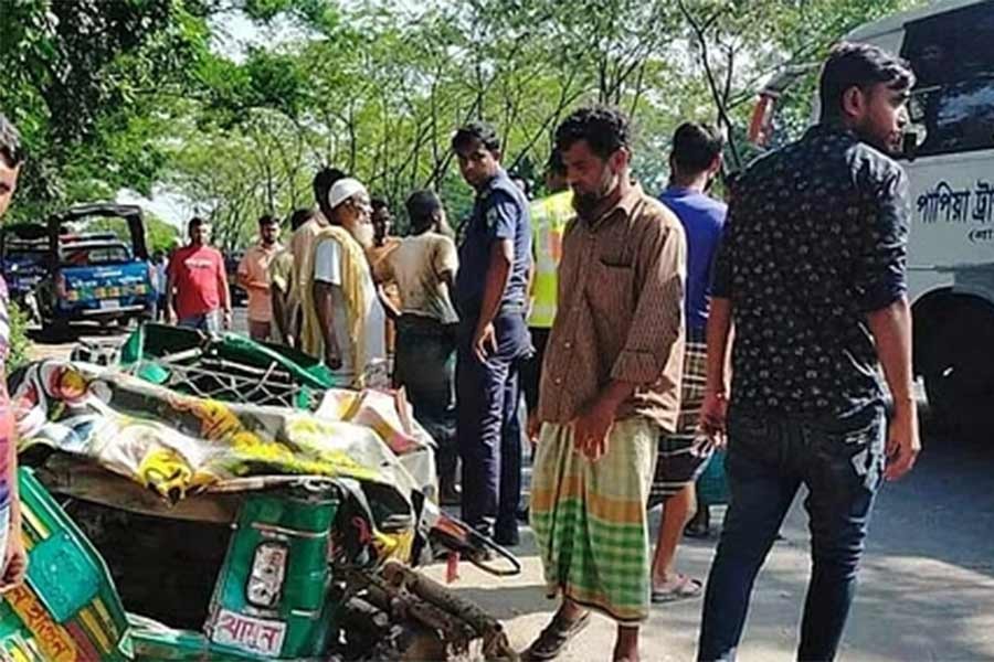 Four die as bus, pickup truck crash autorickshaw in Cumilla