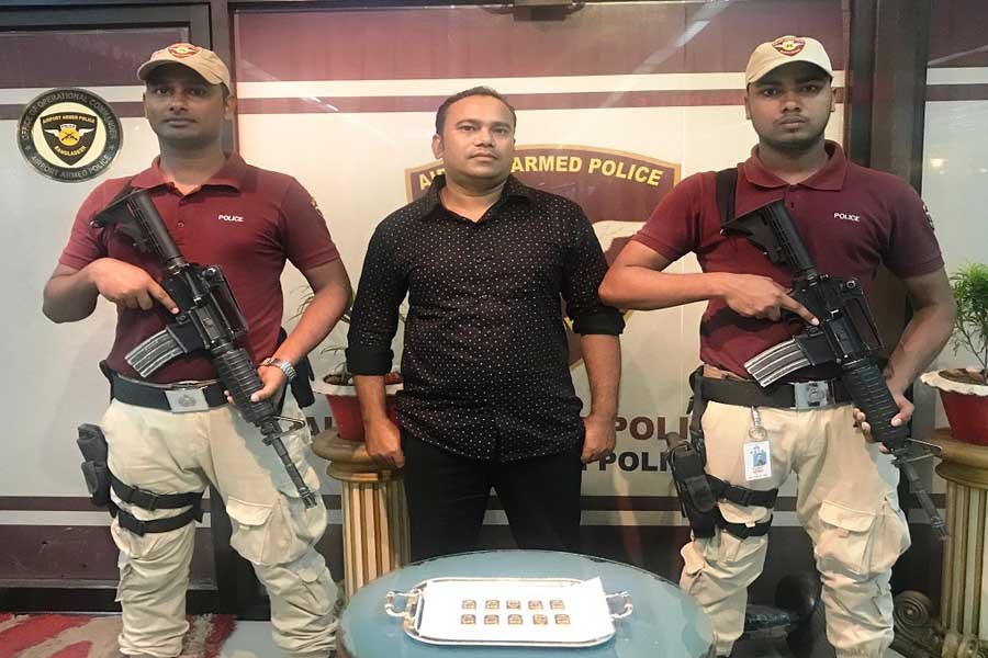 Airport Armed Police (AAP) arrested a man from the Hazrat Shahjalal International Airport (HSIA) and recovered 10 gold bars hidden in his rectum on Friday.