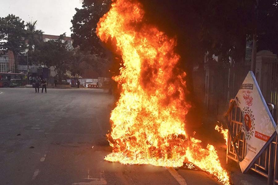 And on Wednesday, unidentified miscreants set ablaze three motorcycles in the SC area. One bike was set on fire in the southeast corner of Eidgah, one in front of the Eidgah main gate and one in front of the Bar Council, according to eyewitnesses.