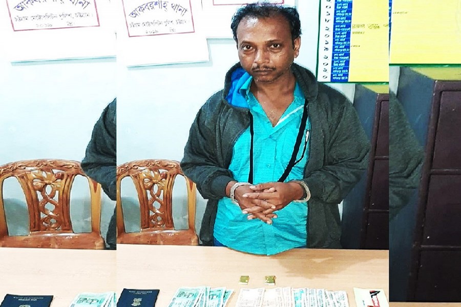 Police also recovered two gold bars worth Tk 0.95 million, an Indian passport, Rs 2,000 and Tk 3,000 from his possession, reports UNB.