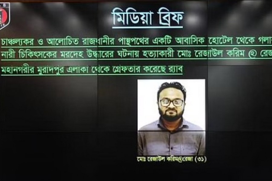 The Rapid Action Battalion has arrested a man on charges of killing a doctor inside a hotel room in Dhaka’s Panthapath.