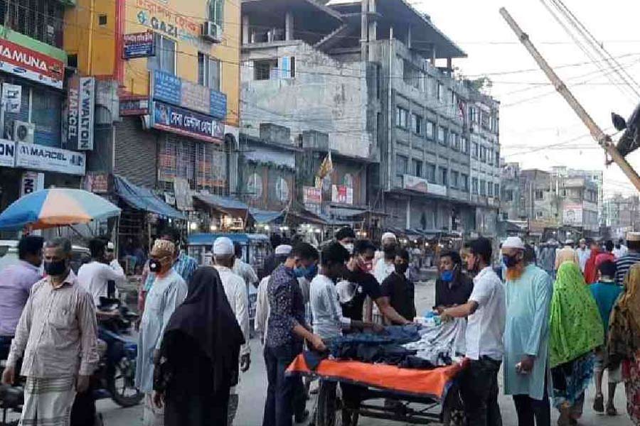 According to UNB, this correspondent found a huge number of people flouting the guidelines on social distancing during a visit at a kitchen market at Shanirakhra in the capital.