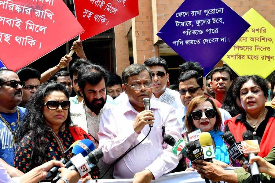Information Secretary Abdul Maleque, BFDC Managing Director Abdul Karim, Additional Secretary Md Mizan Ul Alam, actor Ilias Kanchan, Rozina, Dilara, Anjana, Anna, Riaj, Ferdous, Rokeya Prachy, Shahnoor, Joy Chowdhury, Shipon, Achol, Tanha, producer Khorshed Alam Khashru, Abu Musa Debu, director Mushfiqur Rahman Gulzar, Badiul Alam Khokon among others attended the dengue prevention and cleanliness campaign.