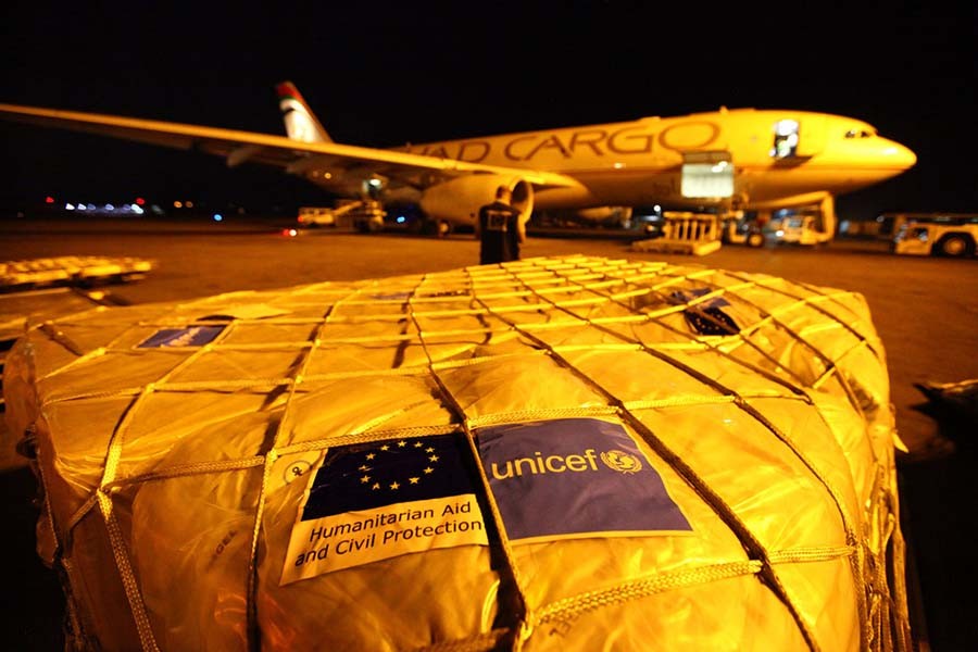 The cargo plane from Copenhagen with 100 tonnes of supplies comprising water purifying tablets, family hygiene kits, sanitary materials, plastic tarpaulins and recreational kits for children and other items reached Bangladesh.